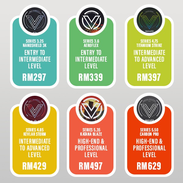 VetraXX designed six paddle series for different play styles and budgets — making it easy for you to find the perfect fit.