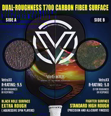 Face Material: T700 Carbon Fiber Dual Roughness Surfaces for Tactical Versatility, Maximum Spin & Control