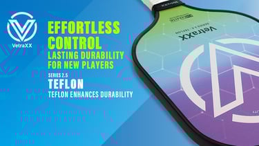 "The Series 2.5 Teflon is designed specifically for beginners and female players seeking a lightweight, easy-to control paddle that offers a smooth, comfortable playing experience. Its Teflon-infused fiberglass surface ensures lasting durability and consistent performance, making it an excellent entry-level option."