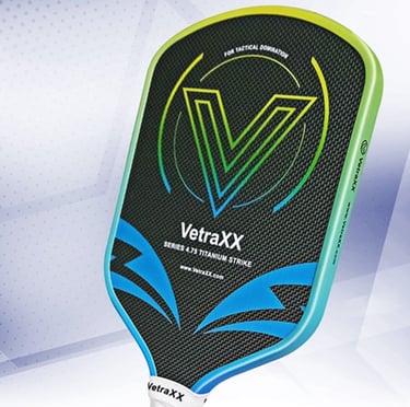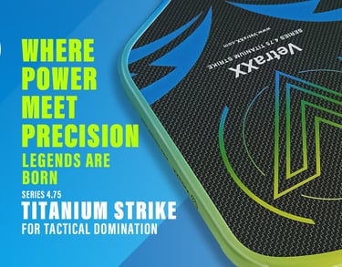 Step into the arena with the VetraXX 4.75 Titanium Strike—a next-generation paddle designed for elite performance. Blending deep-forged titanium face with dual-core impact technology, this paddle is your ultimate ally in commanding every rally, outmaneuvering opponents, and finishing with dominance.